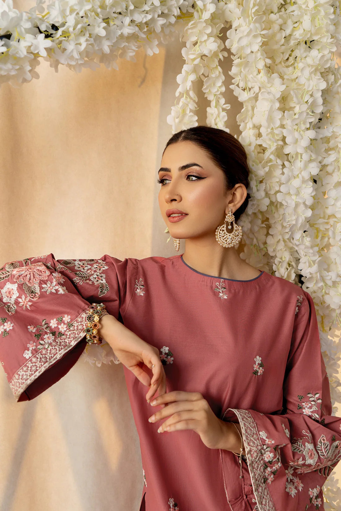 Step into the essence of spring with this stunning ready-to-wear two-piece embroidered suit, a masterpiece that epitomizes elegance and charm. Adorned with a delicate spray of beautiful floral embroidery motifs gracing the shirt front, and intricate florals dancing along the sleeves, this ensemble embodies a timeless allure. Paired flawlessly with exquisitely embroidered trousers, each stitch celebrates the essence of the season, inviting a breath of fresh air into your wardrobe. Embrace the bloom of spring with this captivating ensemble, a testament to grace and sophistication.